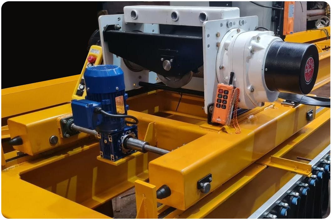 Carro Birriel construido en chapa de acero plegada con ruedas y ejes de acero SAE 1045 montados sobre rodamientos blindados. Conjunto motor-reductor con o sin acoplamiento hidráulico o con variador electrónico de velocidad para arranque suave. Garantía 1 año.