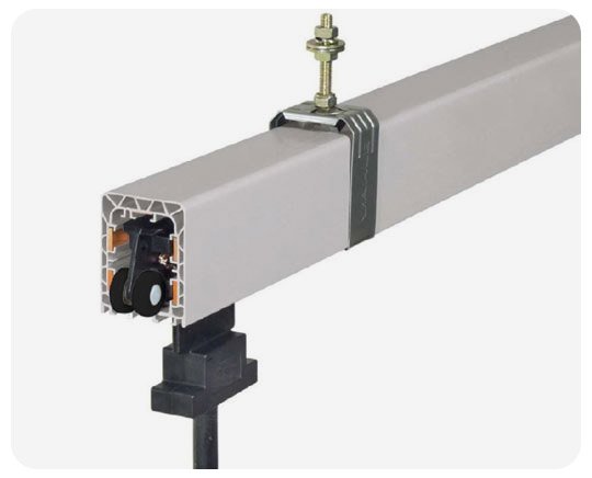 Sistema de construcción simple y económica para alimentación eléctrica de aparejos eléctricos y puentes grúa.